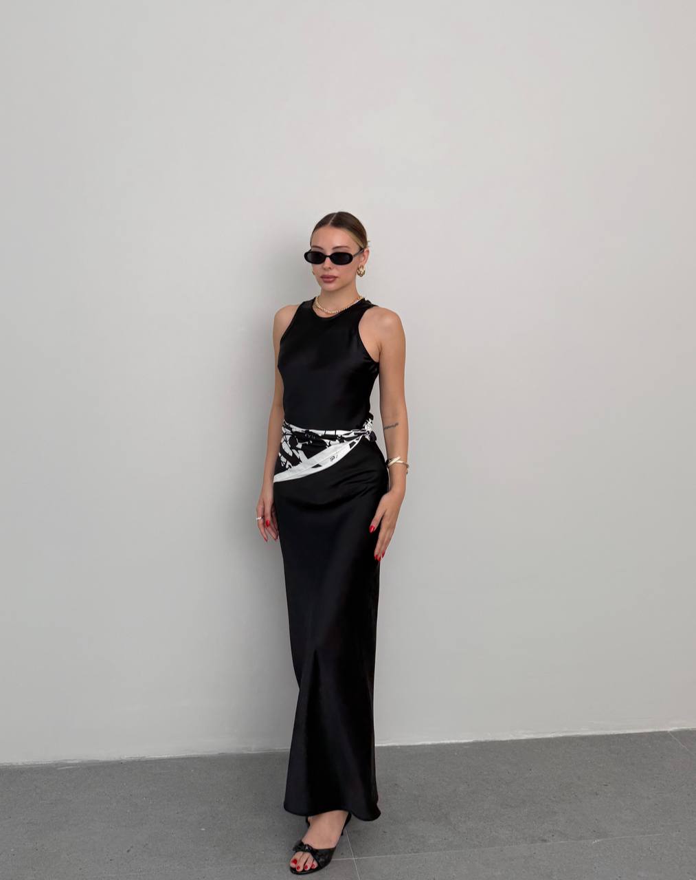 LONG SATIN DRESS BLACK